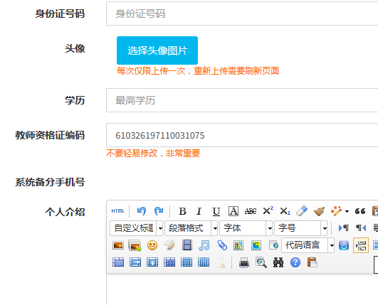 教师资料的修改,可以通过手机端小程序,自己修改,也可以通过电脑端修改自己的资料。
